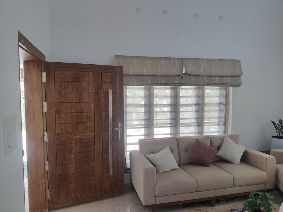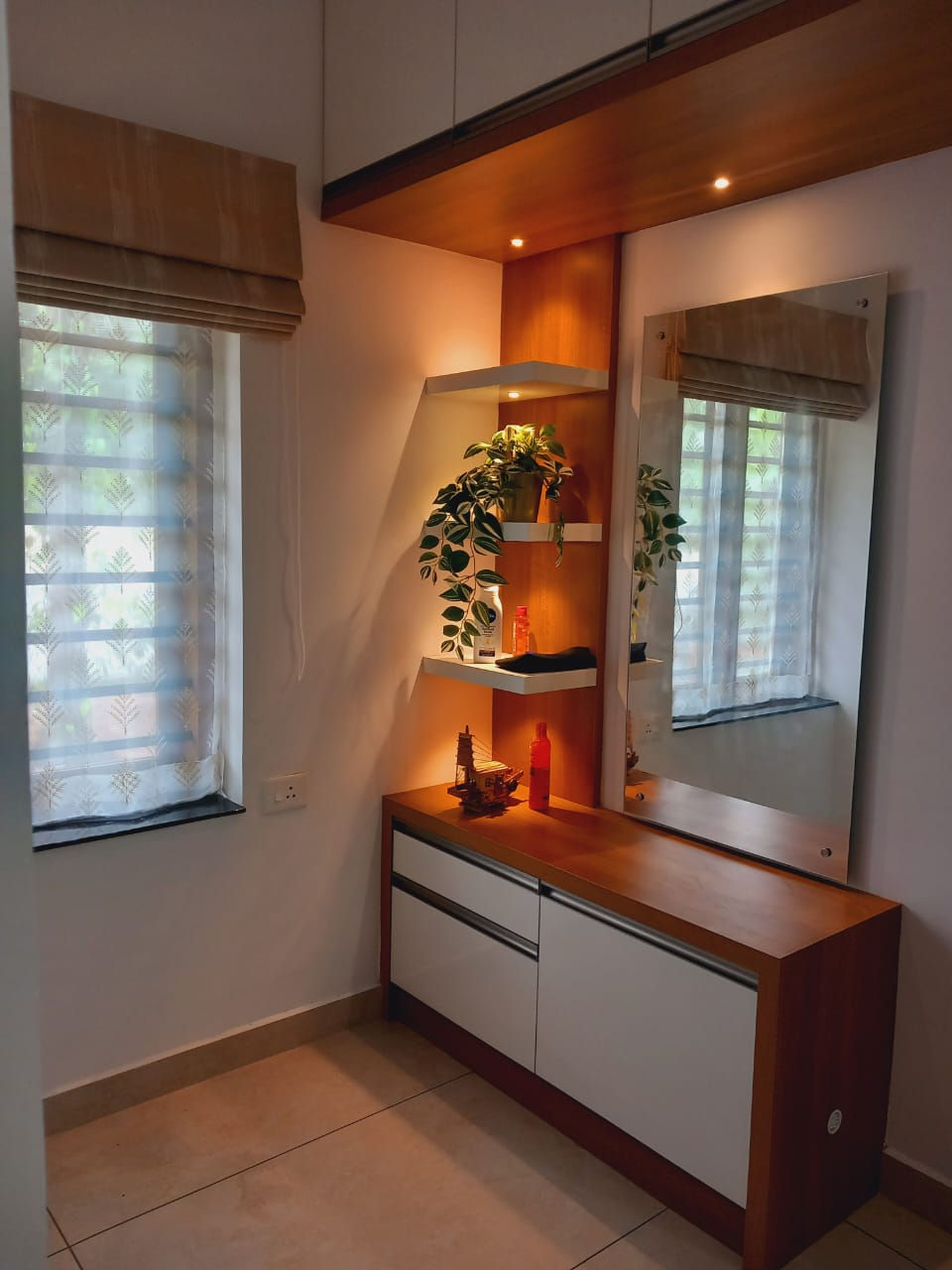 A collection of modern interior designs with wooden accents, decorative plants, and elegant staircase lighting.